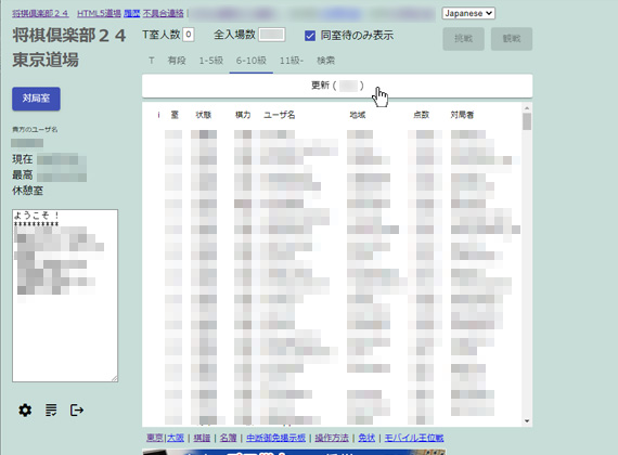 観戦者リストとは将棋盤左下にある観戦者のリストのこと。 - 押すまでは、たとえ観戦者リストが増減しても、本表には反映されない。