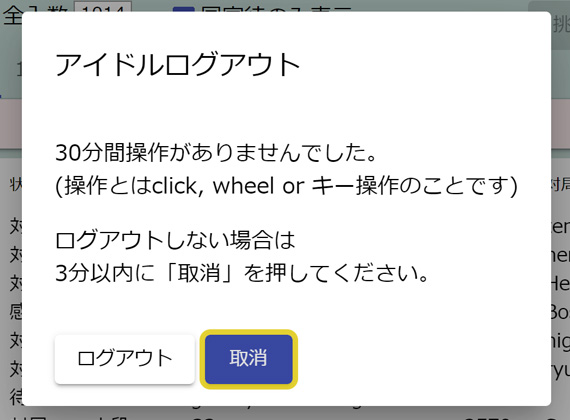 :ログアウトしログイン画面に戻る。もしログアウトしていたら単にログイン画面に戻る。