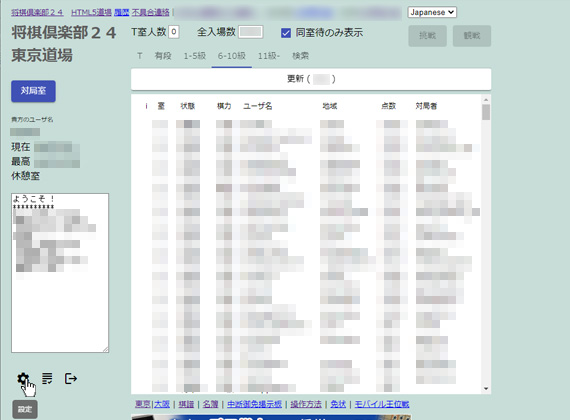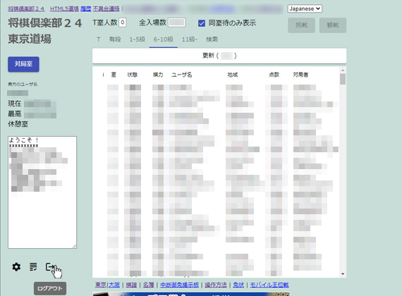 :入場者リストの表示非表示切り替え。入場者リスト非表示で将棋盤を閉じると、入場者リストが表示される。一度切り替えたらその設定がブラウザに保存される。