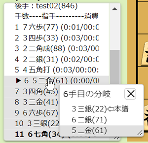 - 変化手順は、棋譜に▶マークで示され、右ボタンクリックで選択できます。